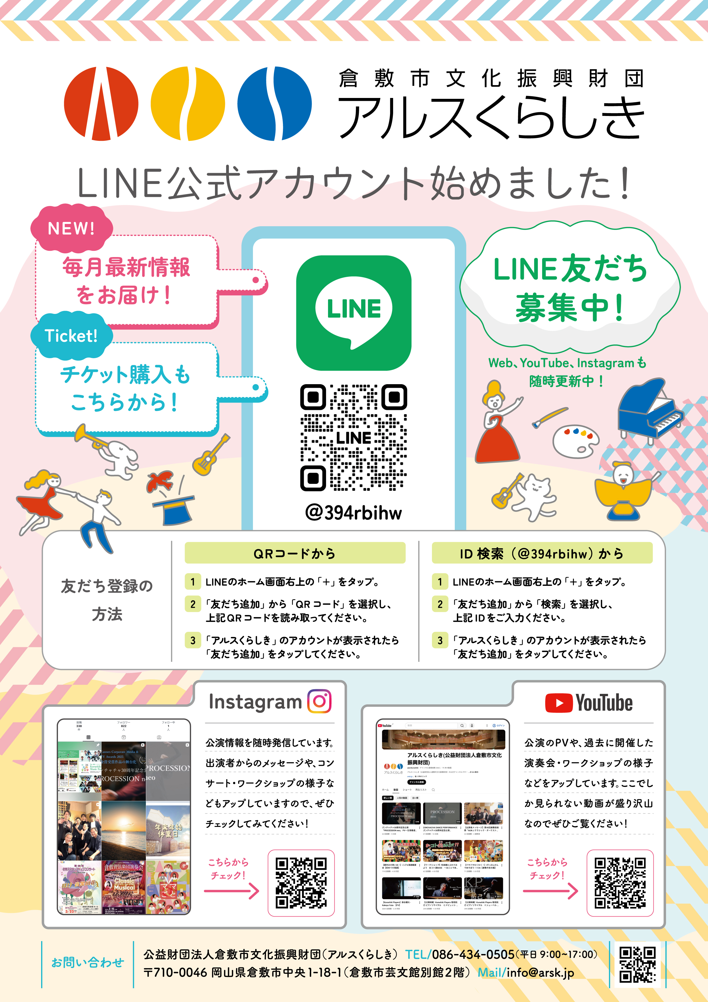 アルスくらしきの公式ラインアカウントを開設いたしました!! 最新情報をいち早くお届けいたします! この機会にぜひ友だち登録をお願いいたします✨